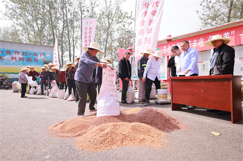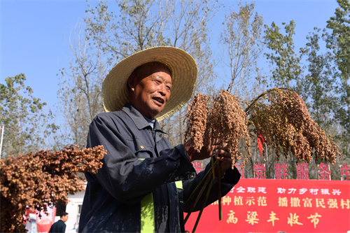 洋河股份攜手張渡村開展“打造原糧種植示范 播撒富民強(qiáng)村種子”高粱豐收節(jié)活動(dòng)